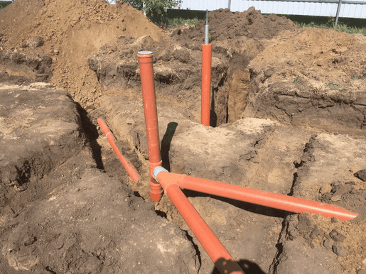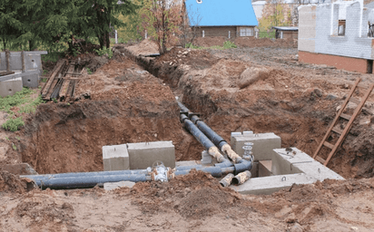 - Прокладка водопроводных и канализационных трасс — траншеи, уклоны, засыпка, установка колодцев, запорной арматуры, узлов учета.