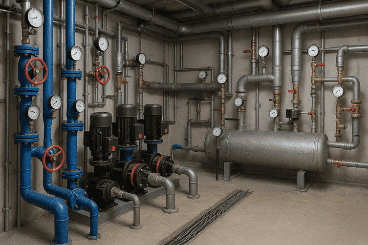 - Автоматизация и контроль — системы управления давлением, расходом и качеством воды
